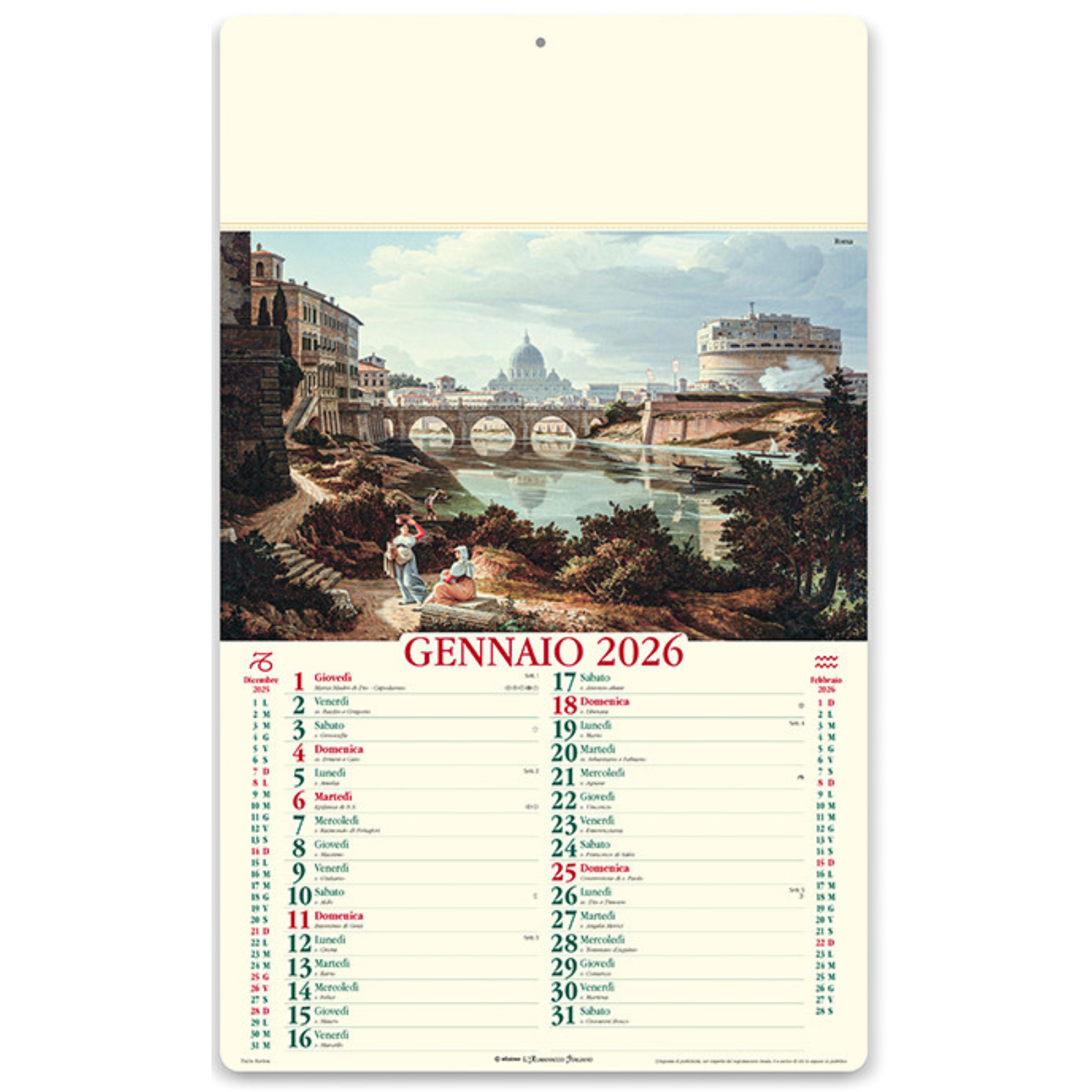 Calendari illustrati personalizzati 2026 da muro Italia antica. Misura 31x52,5 cm con testata ad angoli arrotondati. Realizzato in carta naturale 70 gr. 12 Fogli con stampa su testata ad 1 colore. Prodotto ideale per aumentare la fidelizzazione dei tuoi clienti e come omaggio di fine anno per la tua clientela.
