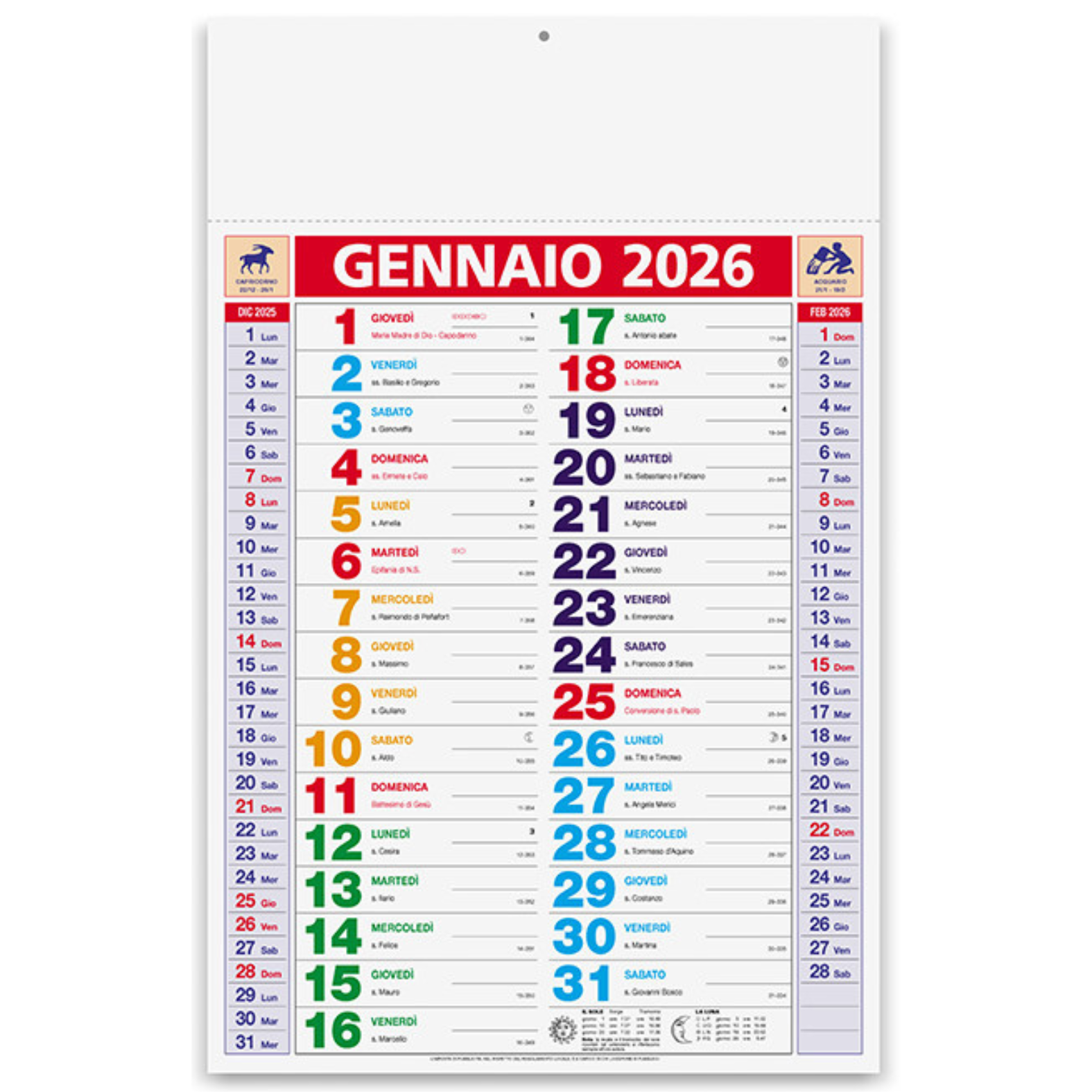 Calendari olandesi personalizzati 2026 da muro modello multicolor. Misura 30x47 cm con ampio spazio note sul fronte ed intero foglio sul retro. Realizzato in carta lucida 70 gr. 12 Fogli con stampa su testata in cartoncino. Prodotto ideale per aumentare la fidelizzazione dei tuoi clienti e come omaggio di fine anno per la tua clientela.