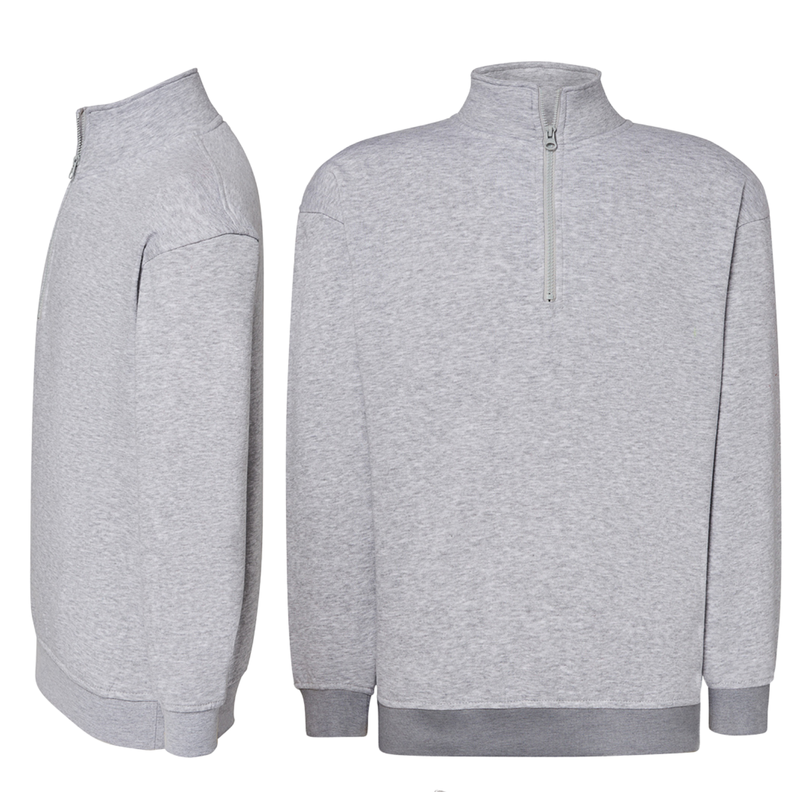 Felpa unisex personalizzata realizzata in 65% COTONE + 35% POLIESTERE. Felpa con collo alto e mezza zip, doppie cuciture, costina 1x1 su collo, polsini e girovita. Fornita con stampa personalizzata, ricamo su richiesta.