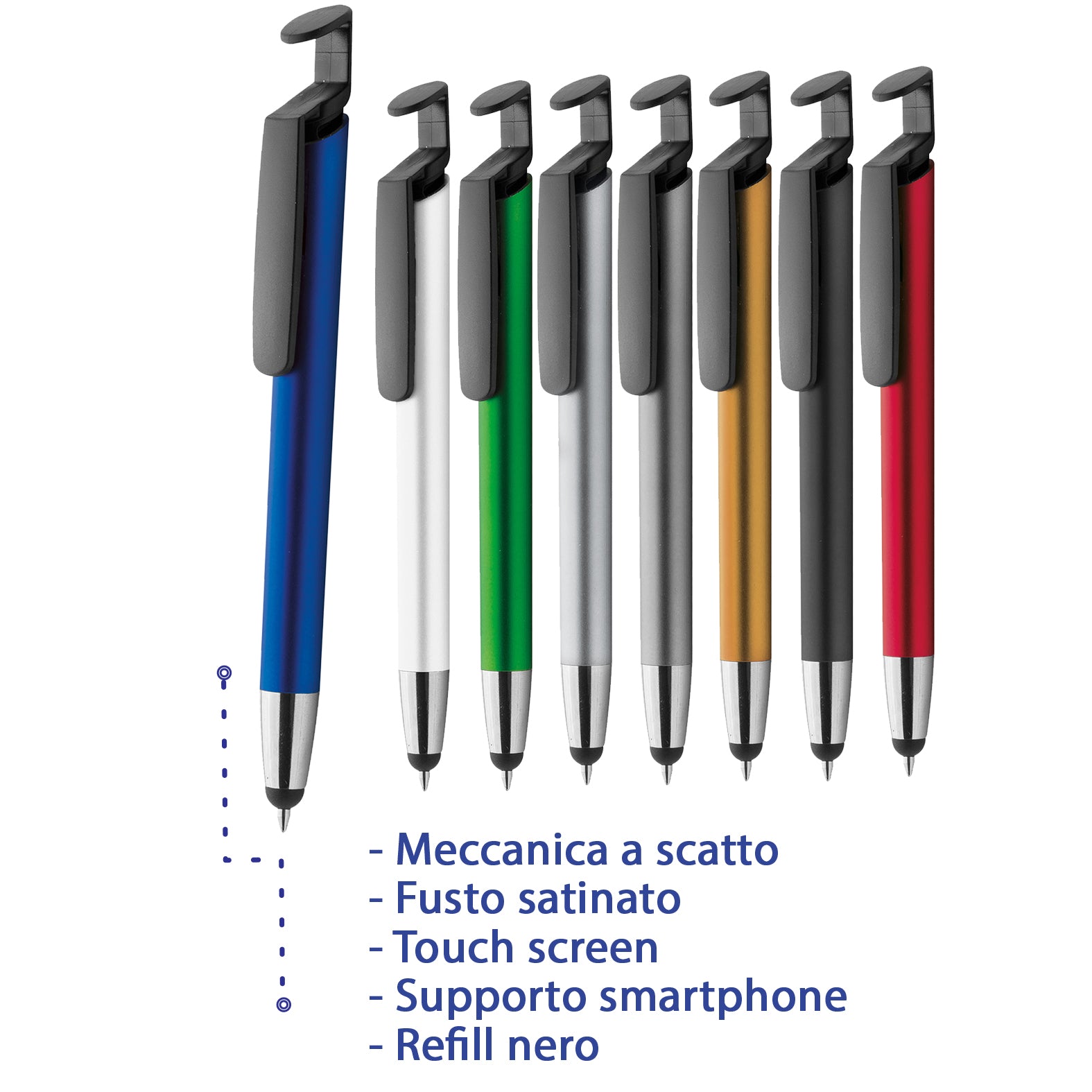 Penne personalizzate con touch screen, supporto smartphone e corpo satinato.
