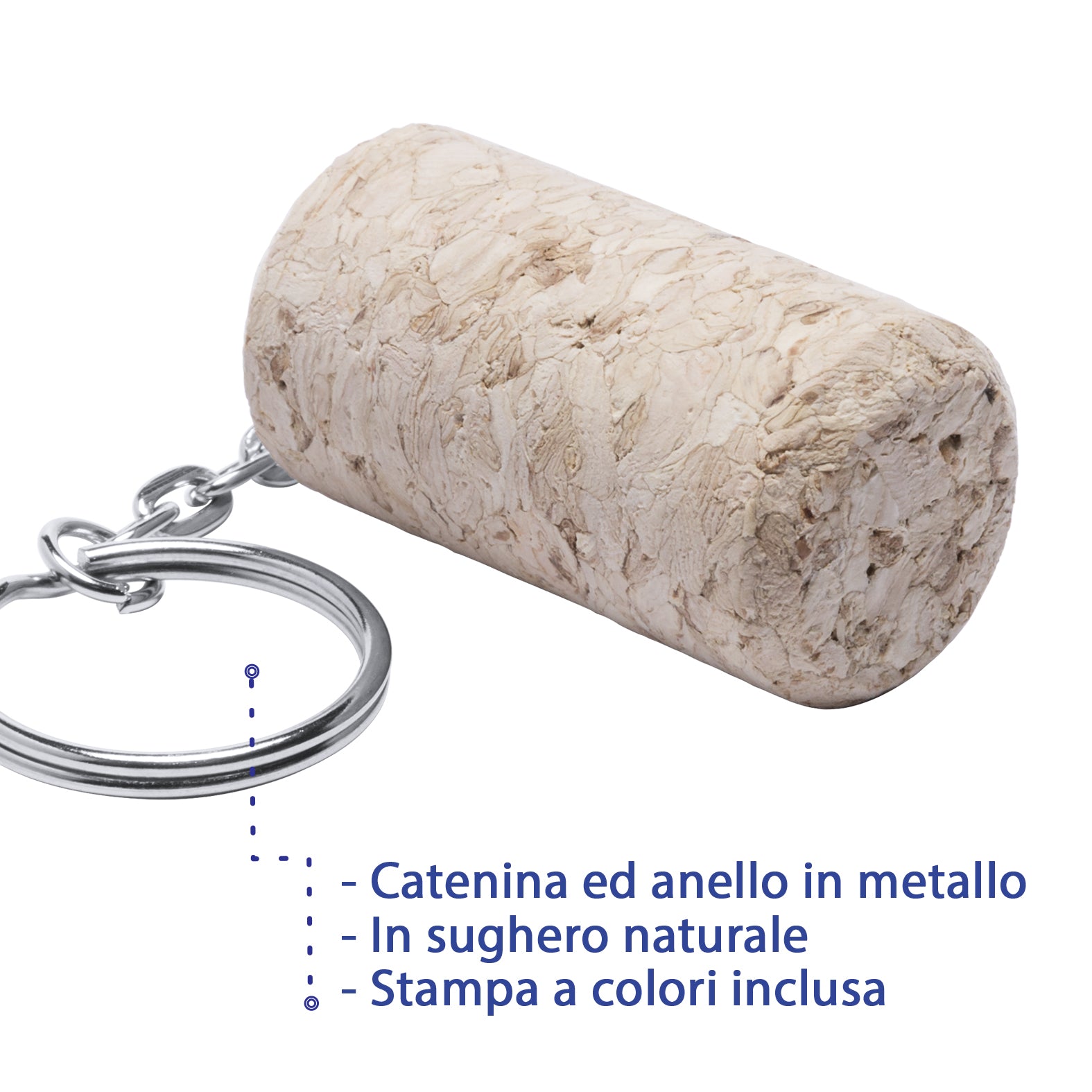 - Portachiavi in sughero naturale con stampa a colori inclusa.